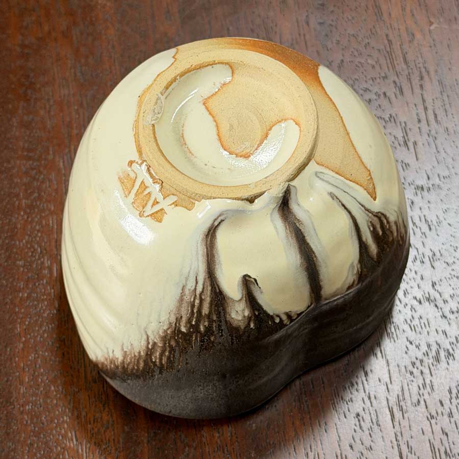 This deep chawan was wheel-thrown and altered into this heart shape using a blend of Mino clays that I have been aging for over 30 years!